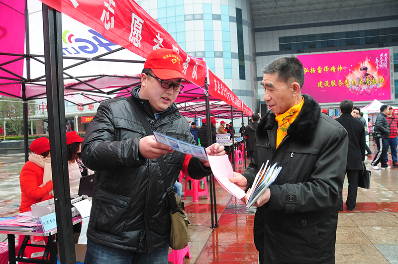 3月5日,公司組織志愿者參加“弘揚雷鋒精神、爭當服務(wù)先鋒”活動,在文化宮現(xiàn)場為廣大用戶提供水質(zhì)、用水和接水及水表出戶業(yè)務(wù)辦理等咨詢、繳費水費、便民小維修、用水知識宣傳等服務(wù)活動。如圖志愿者正在為市民介紹水費交費方式。