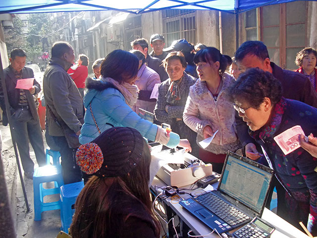 在活動現(xiàn)場,咨詢、繳費(fèi)人群絡(luò)繹不絕,并對現(xiàn)場用戶用水設(shè)施存在的問題,青年志愿者均前往查看處理,努力做到用戶滿意。其中有位叫程紀(jì)英的居民向志愿者反映她家一直沒住人,卻有水量。“是不是表抄錯了?”經(jīng)志愿者查看后發(fā)現(xiàn),是因?yàn)樵诎惭b完成后,施工方交付的資料有誤。志愿者當(dāng)場找到了程紀(jì)英家正確的水表,并修改了資料,表示暫不交水費(fèi)直到資料修改正確后再繳納。
