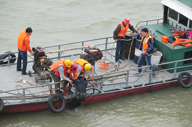 公司每年在用水高峰來(lái)臨前,對(duì)水廠、加壓站的供水設(shè)備、設(shè)施進(jìn)行大檢查。長(zhǎng)江取水頭部設(shè)施的檢查,技術(shù)性強(qiáng)操作難度大,往往需要聘請(qǐng)專業(yè)團(tuán)隊(duì),一般每?jī)赡隀z查一次。