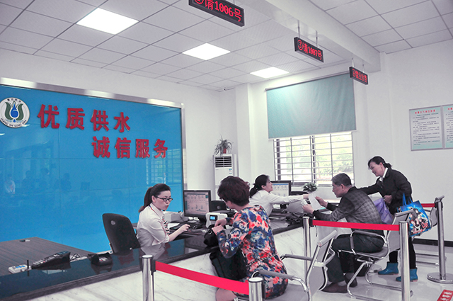標(biāo)準(zhǔn)化供水收費(fèi)服務(wù)廳,方便市民。紀(jì)云霞攝