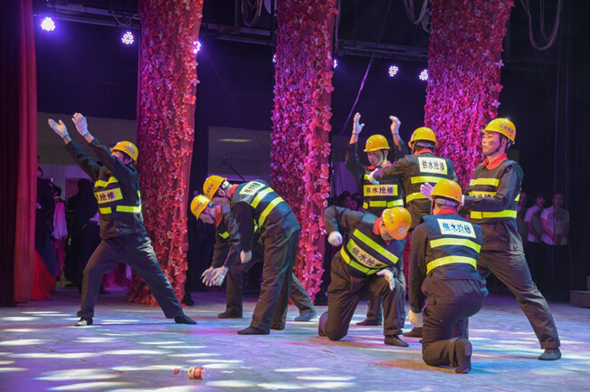 節(jié)目籌備期間,公司領(lǐng)導(dǎo)高度重視,三個(gè)節(jié)目均安排專人負(fù)責(zé)協(xié)調(diào)指導(dǎo),要求公司工會(huì)的同志們挑選優(yōu)秀的青年組建演出隊(duì)伍。在公司各基層單位的積極配合下,挑選出的青年職工克服演出時(shí)間緊、任務(wù)重的困難,齊心協(xié)力排練好演出節(jié)目。比如水廠運(yùn)行班的職工,剛剛下了夜班,顧不上休息,就投入到緊張排練中;有的抄表收費(fèi)人員,為了工作和排練兩不耽誤,在寒冷的冬天早上6點(diǎn)鐘就出門抄表了……正是這樣一群不怕吃苦,勤奮認(rèn)真的青年,在演出過(guò)程中激情表演,最終音詩(shī)畫《決戰(zhàn)冰雪》榮獲二等獎(jiǎng)。