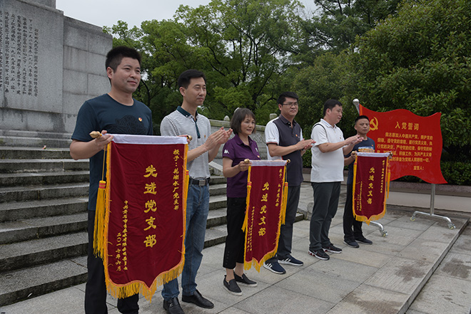“我志愿加入中國共產(chǎn)黨……”一陣陣鏗鏘有力的宣誓聲在洪湖市湘卾西蘇區(qū)革命烈士陵園烈士紀(jì)念碑前回響,為慶祝中國共產(chǎn)黨建黨96周年,公司全體黨員170余人于6月17日、6月24日分批前往洪湖市開展“七.一”革命傳統(tǒng)教育活動。在洪湖市革命烈士陵園紀(jì)念碑前,現(xiàn)場對公司2016-2017年度先進(jìn)黨支部、優(yōu)秀黨員及黨務(wù)工作者進(jìn)行了表彰,管維公司黨支部等3個黨支部分別榮獲“先進(jìn)黨支部”稱號,黃先林等18名同志被授予“優(yōu)秀黨員”榮譽(yù)稱號,紀(jì)云霞等4位同志被授予“優(yōu)秀黨務(wù)工作者”榮譽(yù)稱號。公司黨委書記、董事長余曦對取得榮譽(yù)的集體、個人表示了肯定,勉勵大家以受表彰的先進(jìn)集體和個人為榜樣,不忘初心,充分發(fā)揚(yáng)黨組織戰(zhàn)斗堡壘作用及黨員先鋒模范作用,勇往直前、一如既往為公司供水工作作出努力。隨后,2017年新發(fā)展的18名預(yù)備黨員在烈士紀(jì)念碑前莊嚴(yán)地舉起右手宣誓、老黨員面對黨旗重溫了入黨誓詞,進(jìn)一步引導(dǎo)大家牢記黨員身份,強(qiáng)化黨員意識。表彰大會后,全體黨員跟隨園區(qū)講解員一起瞻仰革命烈士紀(jì)念館,傾聽講解員講述洪湖這塊紅色土地上英雄先烈們的革命事跡。