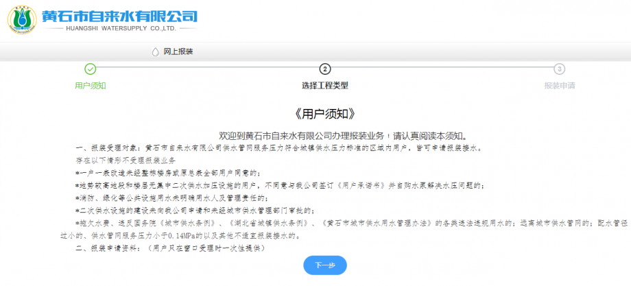為了進(jìn)一步優(yōu)化營(yíng)商服務(wù),公司創(chuàng)新采用“互聯(lián)網(wǎng)+供水新模式”,開通用戶網(wǎng)上報(bào)裝,實(shí)現(xiàn)“最多跑一次”。即日起用戶辦理報(bào)裝可使用“黃石市自來(lái)水有限公司”微信公眾號(hào)或者黃石市自來(lái)水有限公司官方網(wǎng)站(http://www.m.getranslation.com)中網(wǎng)上報(bào)裝功能,報(bào)裝資料經(jīng)后臺(tái)審核合格后,業(yè)務(wù)人員會(huì)主動(dòng)與用戶取得聯(lián)系,做好對(duì)接服務(wù)工作,避免了用戶的來(lái)回奔波,形成線上線下功能互補(bǔ),提高用戶滿意度。