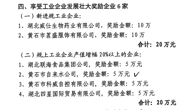 4月15日,市自來水有限公司獲得黃石港區(qū)人民政府發(fā)放的工業(yè)企業(yè)發(fā)展壯大獎金5萬元整,以獎勵該公司作為規(guī)上企業(yè)在2019年度產(chǎn)值增幅達(dá)到20%以上的成績,黃石港區(qū)共有4家單位獲此榮譽。
