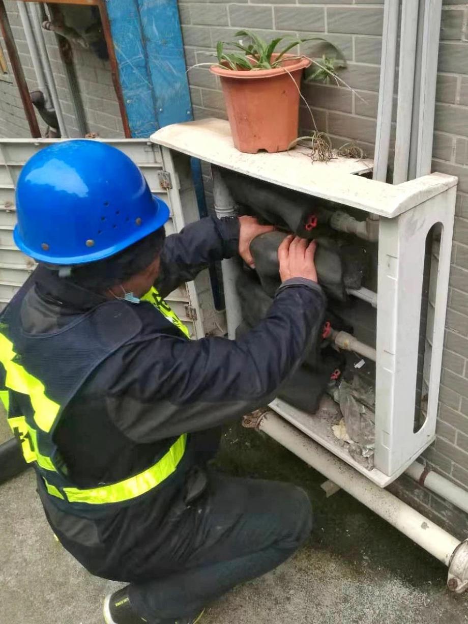 營(yíng)銷公司工作人員在為水表“穿冬衣”