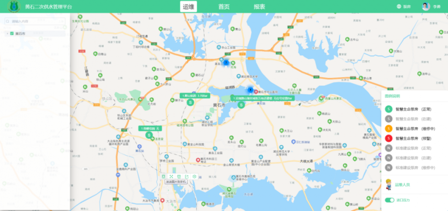工作人員可以通過網(wǎng)頁、手機(jī)APP、微信小程序等渠道,接入該平臺,24小時(shí)實(shí)時(shí)監(jiān)控二次供水泵房設(shè)備設(shè)施的運(yùn)行狀態(tài)。且隨著接入泵房數(shù)量的增加,黃石市自來水有限公司將通過數(shù)據(jù)分析/預(yù)警、電子巡檢和人工巡檢相結(jié)合的方式,進(jìn)一步降低運(yùn)維成本,有效解決設(shè)備多、維護(hù)難、無法及時(shí)響應(yīng)等痛點(diǎn),變被動(dòng)為主動(dòng),提高供水服務(wù)質(zhì)量。