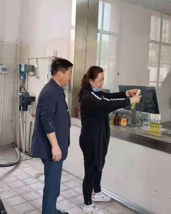 圖8:下陸加壓總站紀檢委員苗鵬監(jiān)督檢查水質(zhì)檢測情況