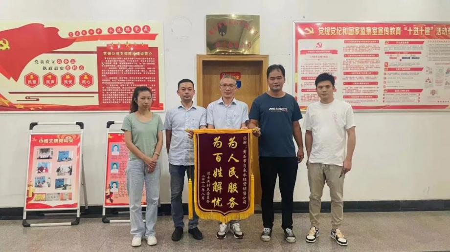 8月9日,陽(yáng)光灼熱卻擋不住用戶感激之情,市民向市自來(lái)水有限公司送上“排憂解難 服務(wù)周到”錦旗,感謝公司及時(shí)發(fā)現(xiàn)市民戶內(nèi)管線漏水,免費(fèi)更換管線維修,保障市民家庭用水。