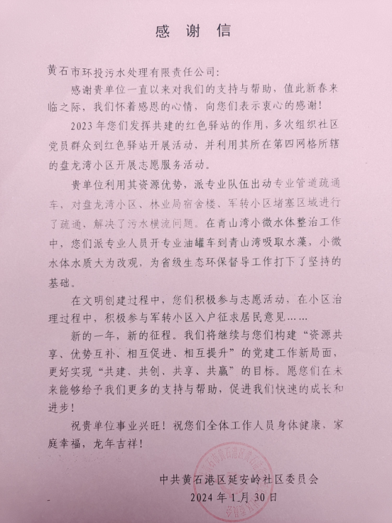 自創(chuàng)建“紅色驛站”以來,我們發(fā)揮技術(shù)優(yōu)勢,為黨員群眾提供管網(wǎng)疏通等志愿服務(wù),截止目前污水公司已派出專業(yè)隊(duì)伍開展志愿疏通服務(wù)15次,疏通惠及社區(qū)群眾1000多戶,下一步污水(排水)公司將以“紅色驛站”為載體,聯(lián)合延安嶺社區(qū),積極擴(kuò)大企業(yè)的社會(huì)影響力,為優(yōu)化我市營商環(huán)境展現(xiàn)國企擔(dān)當(dāng)。