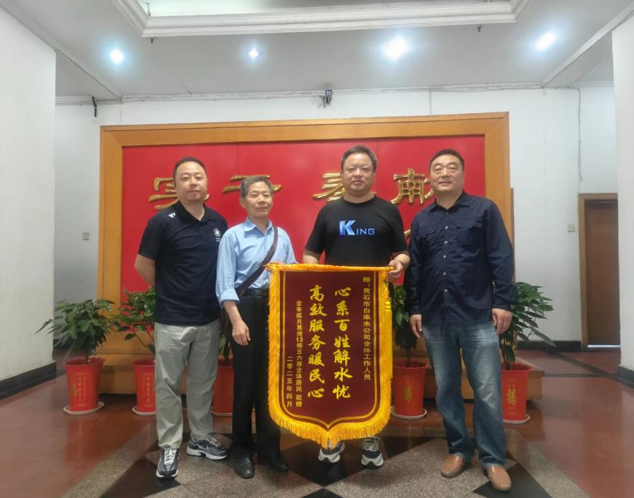 4月11日上午,金棗苑月亮灣13棟五六層居民代表將一面印有“心系百姓解水憂 高效服務(wù)暖民心”的錦旗送至黃石市水務(wù)集團(tuán)客服中心,感謝集團(tuán)徹底解決了困擾居民多年的高層水壓不足問(wèn)題。據(jù)了解,因管網(wǎng)老舊和地勢(shì)因素,該樓棟五、六層住戶長(zhǎng)期面臨用水難題。高峰期水流如線、熱水器無(wú)法啟動(dòng),洗衣做飯等基本生活需求都成困擾。2025年3月,客服中心接訴即辦,積極響應(yīng)群眾訴求,組建專班實(shí)地勘察,迅速制定改造方案,經(jīng)過(guò)為期2天的緊張施工,徹底解決了小區(qū)居民的吃水難題??头行闹魅螀纬航舆^(guò)錦旗時(shí)表示:這面錦旗既是榮譽(yù)更是鞭策,下一步,黃石水務(wù)集團(tuán)將繼續(xù)堅(jiān)持“用戶至上”的服務(wù)理念,在工作中用心、用情、用力為用戶創(chuàng)造良好的用水環(huán)境,真正把優(yōu)質(zhì)服務(wù)落實(shí)在行動(dòng)上。