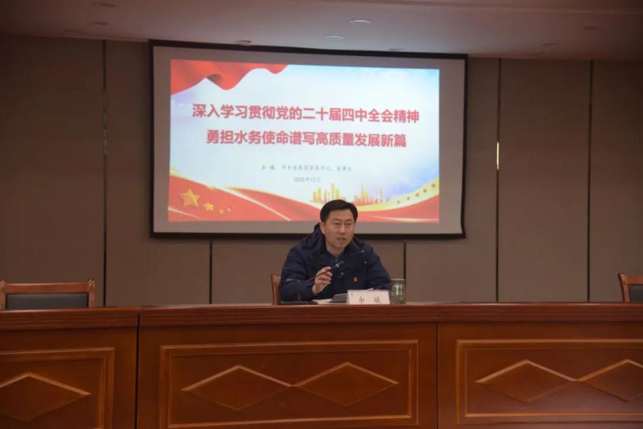 為深入學(xué)習(xí)貫徹黨的二十屆四中全會(huì)精神,全力推動(dòng)全會(huì)精神走深走實(shí)。12月15日,市水務(wù)集團(tuán)黨委書記、董事長(zhǎng)余曦以“深入學(xué)習(xí)貫徹黨的二十屆四中全會(huì)精神,勇?lián)畡?wù)使命譜寫高質(zhì)量發(fā)展新篇”為主題作專題宣講。